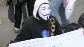 المتظاهرين يرتدون اقنعة وجوه الشهداء