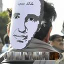 protesters wearing masks of martyr faces